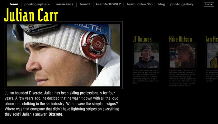 Banner Ads Part of ongoing creative support Flash Site 2007 website design Product Page Product showcase in Flash Posters Inspirational theme posters USA TODAYProject Fishburne USA TODAYFor The Win! USA TODAYSuper Bowl Ad Meter USA TODAYCropt USA TODAYBracket Challenge USA TODAY2016 Rio Olympics USA TODAY2018 Pyeongchang Olympics 2014 RedesignTelluride 2009 – 2014Jackson Hole Mountain Resort 2013 RedesignSchweitzer Mountain Resort 2010 – 2014Aspen Snowmass 2013Alta Ski Area 2007 – 2014Sugarloaf 2006 – 2013Sunday River 2013 RedesignLoon Mountain 2012 – 2015Deer Valley Resort 2012 RedesignSki.com 2010 – 2011Ogio 2010 – 2012Freeskier Magazine 2011 Site RedesignStöckli