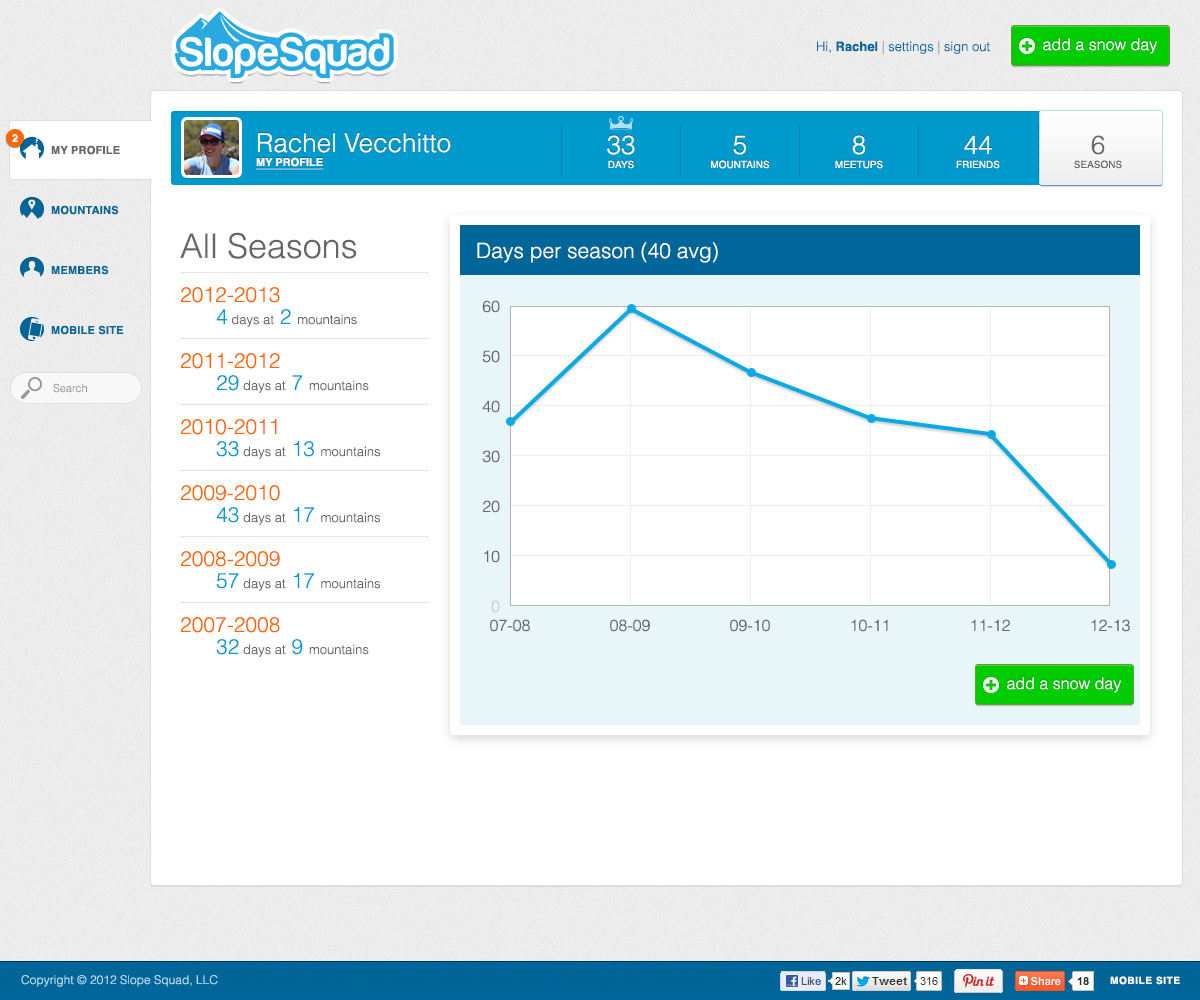 User Profile Landing page Season Stats Year by year metrics Mobile Screens Big, mobile-optimized UI USA TODAYProject Fishburne USA TODAYFor The Win! USA TODAYSuper Bowl Ad Meter USA TODAYCropt USA TODAYBracket Challenge USA TODAY2016 Rio Olympics USA TODAY2018 Pyeongchang Olympics 2014 RedesignTelluride 2009 – 2014Jackson Hole Mountain Resort 2013 RedesignSchweitzer Mountain Resort 2010 – 2014Aspen Snowmass 2013Alta Ski Area 2007 – 2014Sugarloaf 2006 – 2013Sunday River 2013 RedesignLoon Mountain 2012 – 2015Deer Valley Resort 2012 RedesignSki.com 2010 – 2011Ogio 2010 – 2012Freeskier Magazine 2011 Site RedesignStöckli