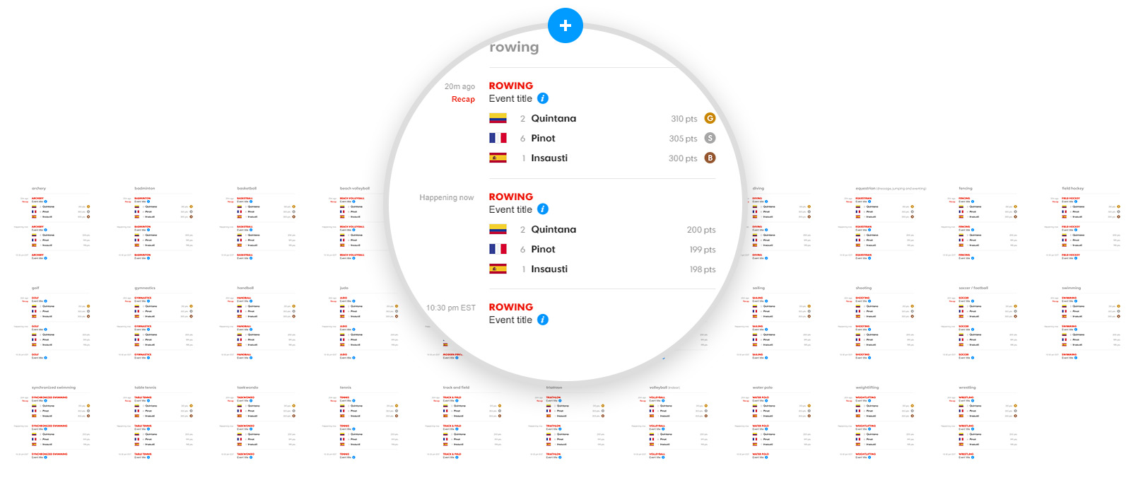 Schedule and scoring matrix UX identified immediately a need for robust exploration due to the unusual data needs of highly varied scoring types and matchup specifications for olympic sports as they vary from traditional pro sports.